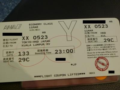 FLIGHT予約と合わせてOptiontown.comから「Eso」EmptySeatOptionリクエスト(HND-KUL間)を入れておいた。当日の空席状況次第でOKかどうか決定・・・・・結果はリクエストOKとなり3列(ABC)をひとりで使用出来るようになった。ボーディングパスにもシールで表記される。料金は19US$・・・そんなに高くは無い。(リクエスト時にクレジットCard決済、決済時レートで1,863円)万が一リクエストがOKにならなかった場合は1週間後位にクレジットCardへ返金)ただし航空券購入時に支払った座席指定料は戻ってきませんのでご注意を。
