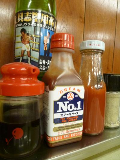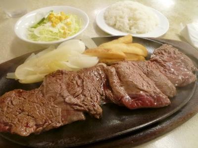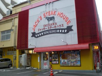 以前は辻にあったが、現在はゆいレール・旭橋駅から徒歩5分位の場所に移転(13年前位)したこのお店は常連さんのたっての希望により昔の内装そのまま再現されているそうだ。注文したのはテンダーロインステーキLサイズ(250g)最初にスープが出てきますが薄味(缶詰?)なので胡椒を振って頂く。あとサラダとご飯かパンが付いてきます。お肉はミディアムレアがオススメ。とても柔らかく、女性でもペロリと行けると思います。味付けは卓上のソース・調味料類で自分好みに出来ます。最初は塩コショウでその後はマスターソースやA1ソースで頂きました。タレントの具志堅さんがTV(ミラクル9)で『ジャッキー』と言っていたように店内には有名人の方々のサイン色紙が多数ありました。