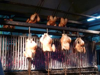 店先で鶏一羽を丸ごとくるくる回しながらじっくりと焼き上げていくこのお店のガイヤーンは皮はパリパリで身はしっとり柔らかい。一人だったのでハーフ(半身)を注文、つけたれは2種類出て来ますがそのまま食べたほうが美味しい。この店はソムタムタイも美味しいので一緒に注文されることをオススメ。あと多めにカオニャオをもらえばかなり満腹になります。お店は以前ワットチェンマンに近い場所にありましたが、現在はワットプラシンに近い場所に移転となっていますのでご注意ください。