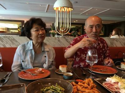 スイソテルザスタンフォードホテル最上階のレストランでのディナーをお勧めします。日暮れどき、刻々と闇が深まるにつれ、眼下の輝きが一層増してきます。2月に娘に連れていってもらっての素敵な思い出、一ヶ月滞在中の最高の贅沢を味わうことができました。 私的なことですが、このレストランとバーの照明改装工事を娘が請け負い、その工事完成直後でディナーでした。たそがれの変化に合わせて、レストランの照明も二段階に変化させるというところがミソなんです。そんなことにがんばっている日本人がいることをおしらせしたくて…。もちろんレストランの味は保証します。