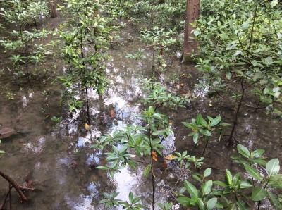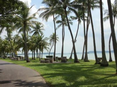 MRTの東の終点、パシールリス駅から、ボツボツと島のはずれまで歩きました。熱帯雨林と湿地帯、マングローブの林、野鳥の観察小屋などを抜けていくと、ヤシのしげる海辺にでます。渚辺にたつとグアムかハワイの海岸とも思える場所に行き着きます。シンガポールのリピーターにはお勧めのスポットです。
