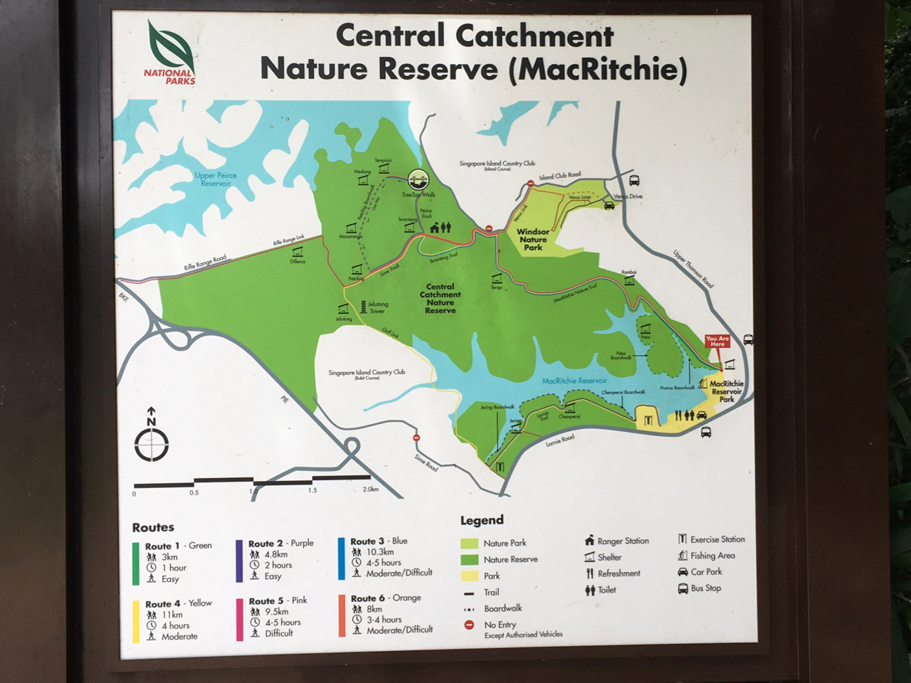 大都会に接しながら熱帯樹林として立派に残されてきたようだ。ちょっとしたジャングル探検気分も味わえるが、道標や地図も要所に設置されていて、迷うことはない。念の為スマホの地図があれば完璧。オオトカゲ、サル、野生のニワトリ、そしてシンガポールでは普通のマイナ にも出会える。