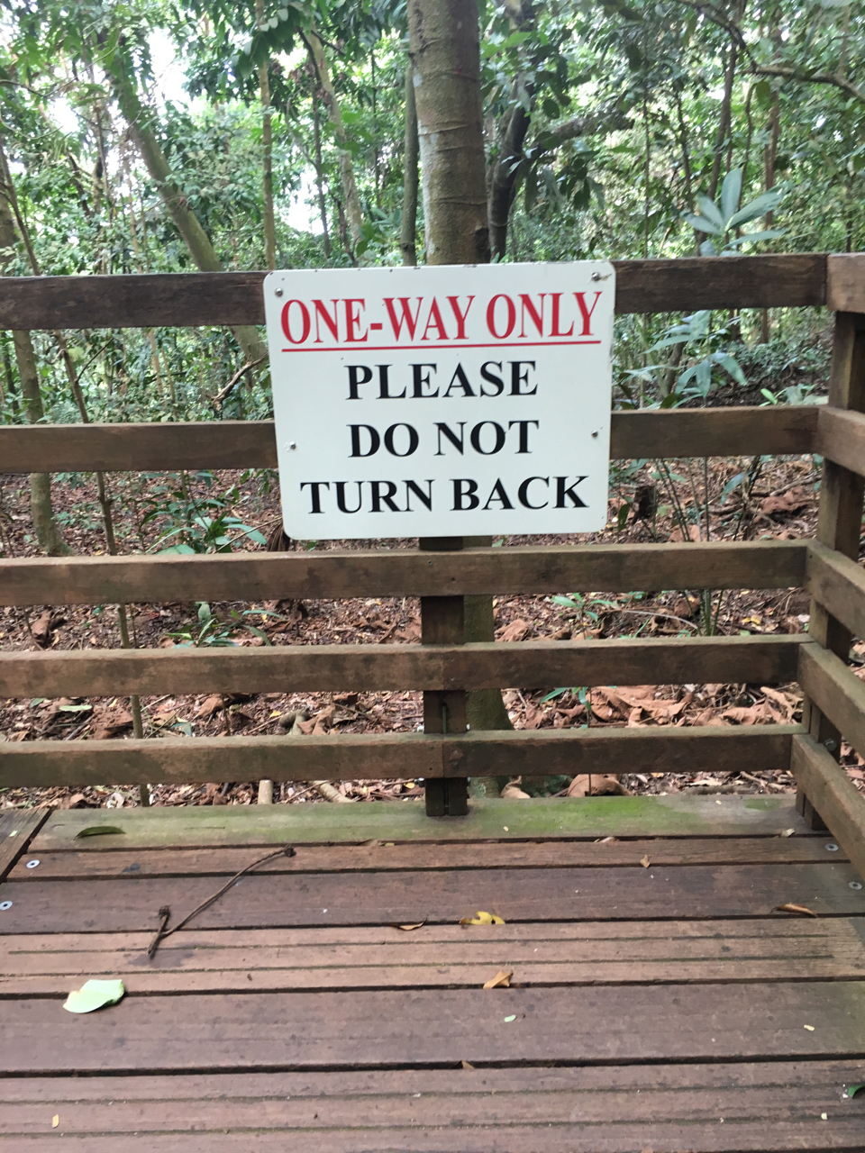 トレイルを完全に走破すれば10kmにもなる。高温多湿の気候で、途中には自販機などもないから水は必携すること。なおこの時期だから蚊などの虫はいなかった。- 旅行時期