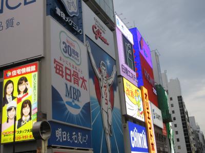 大阪なんば駅近くの観光名所。一粒300メートルのグリコの看板や、KFCのカーネルサンダース像が投げ込まれた道頓堀橋はあまりにも有名。近隣にはかに道楽や粉ものの店など、大阪らしいグルメのお店やファッションのお店等が密集した一大繁華街となっている。その知名度から外人観光客も大挙して押し寄せており、道頓堀橋の上は大変な混みよう。国際観光都市大阪の面目躍如。
