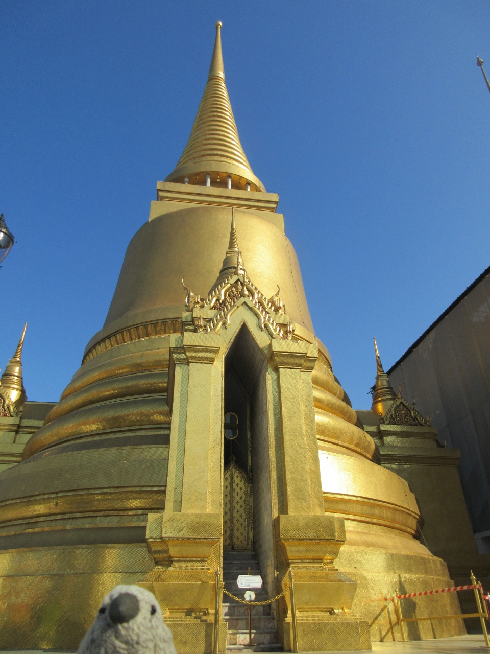ワットプラケオの本堂周辺にある建物群の一つで、金ぴかな外観から一際目を引く存在。スコータイ王朝時代にスリランカから伝わった様式で建てられているとのことで、創建は1855年。当初は金ぴかではなかったらしいが、1882年に黄金色のタイルが表面に貼りつけられた。その後当時のタイルは工事等で棄損してしまったそうだが、1982年に再度新しいタイルで改修され今に至る。内部には仏舎利が収められているそうな。