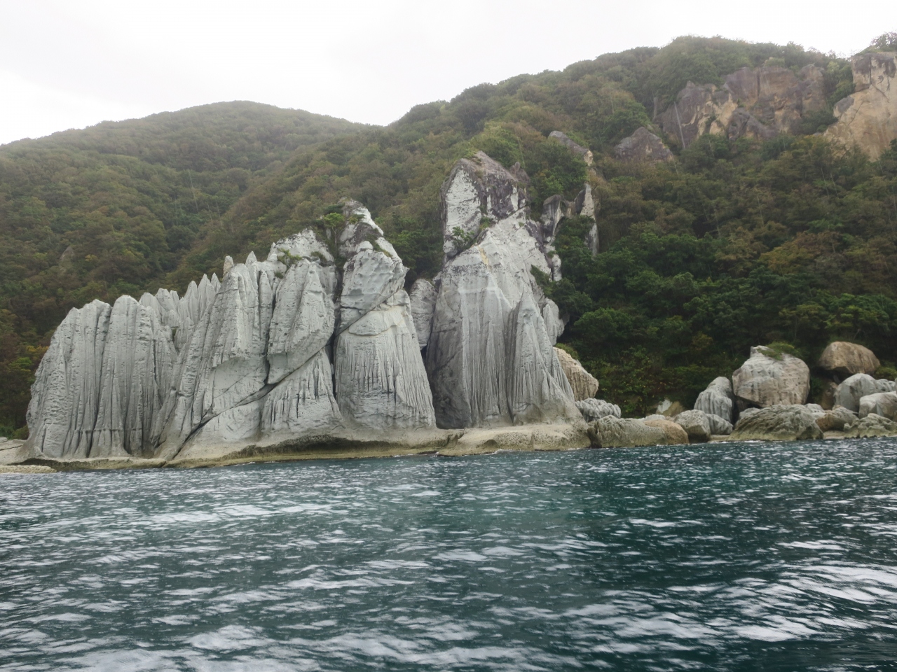 下北半島の西海岸にある奇勝地。白亜の凝灰岩が作り出す断崖がまるで御仏の姿のように林立していることからこの名がついた。なんでもこのあたりの地層は大変古く、まだ日本列島がユーラシア大陸とくっついていたころの地層が露出しているものらしい。