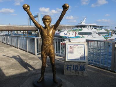 石垣港離島ターミナルの中にあるモニュメント。60-70年代にかけてライトフライ級王座を13回防衛するという偉業を成し遂げた具志堅用高氏をたたえて建立された。今はテレビのバラエティ番組でおちゃらけた姿ばかり見せているけれど、かつてはカンムリワシの異名をとる偉大なボクサーであったことを改めて認識させられる施設。