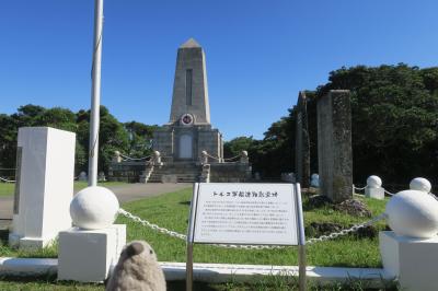 トルコ記念館から樫野灯台までの道すがらにある立派なエルトゥールル号遭難者を悼むための記念碑。遭難事故があったあと、この場所には日本の関係者が建てた小規模な記念碑があったそうだが、その後トルコ政府の資金により、現代の立派な記念碑に建て替えられたよし。エルトゥールル号遭難については、台風という気象条件もあったとはいえ、船の老朽化や船員の訓練不足など人災的側面もあり、そうした面へのトルコ政府のせめてもの贖罪の意味もあったのかも。