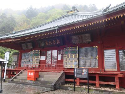 中禅寺湖湖畔にあり、朱塗りの社殿が目を引く由緒ある古刹。本尊の立木観音は開祖勝道上人が中禅寺湖上に幻視したとされる観音様を、一本の巨木から彫りだしたとされ、素朴ながらも慈愛に満ちた尊顔で参拝者を癒している。