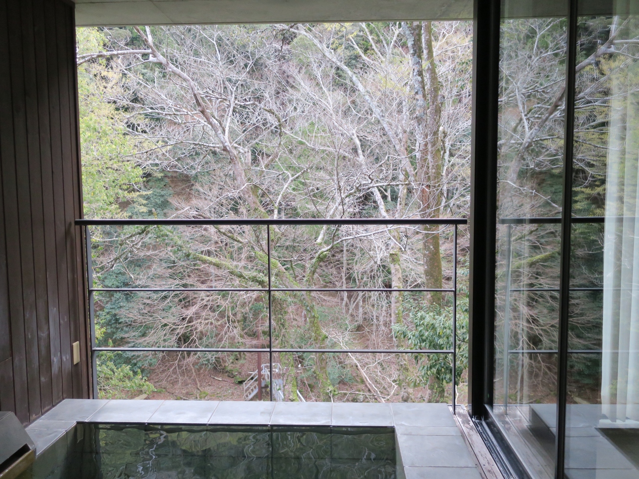 フロント棟のようなものはないので、チェックイン・アウトとも客室内で行う。冷蔵庫内のドリンクはビール含め無料。川を臨む客室露天はちょうどよい温度でいくらでも入っていられる。テレビはないが、代わりにCDプレイヤーが備え付けられている。なおWifiは入るので心配ない。- 旅行時期