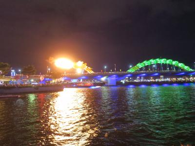 ダナン市内を流れるハン川にかかる橋のうちもっとも有名かつ目立つダナンのランドマーク。日中も金色に輝き目立つ存在だが、夜はライトアップされさらに目立つ。