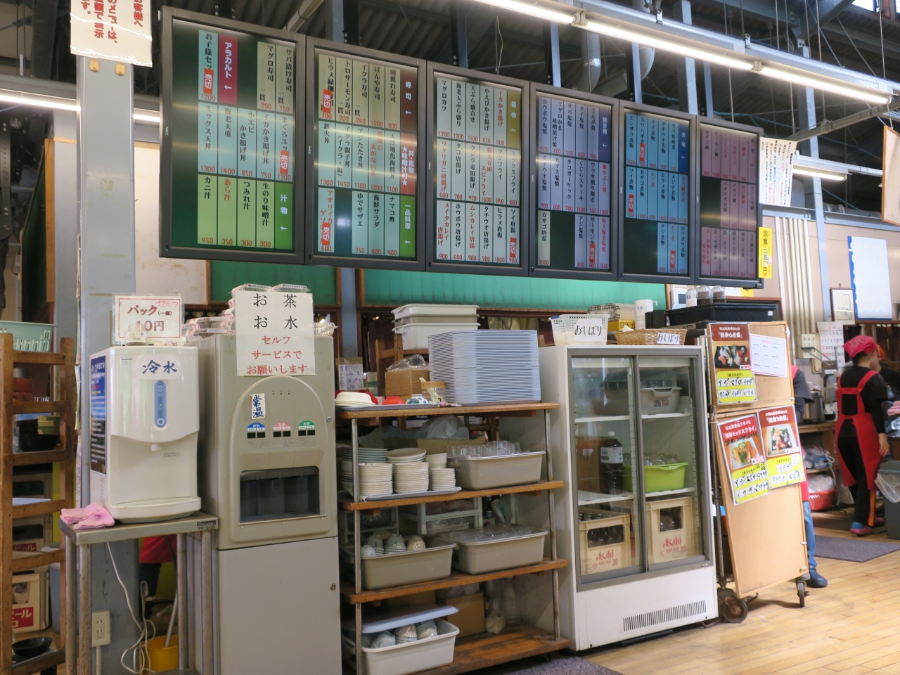 料理は寿司、まかない丼、刺身定食など豊富。味もまずまず。ただしゆっくり落ち着いて食事を楽しむ雰囲気ではない。- 旅行時期