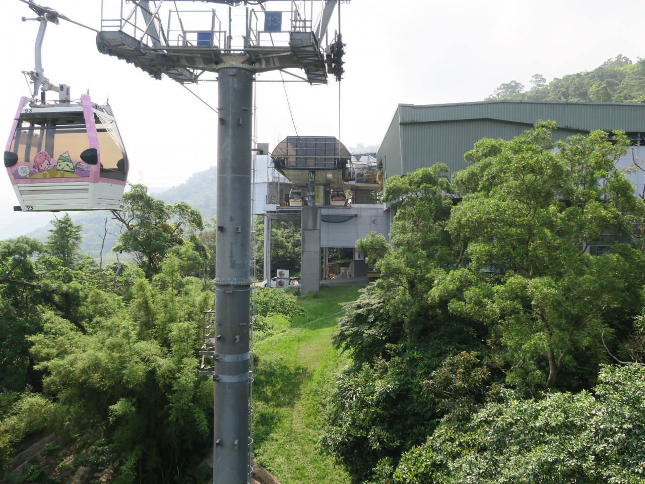 MRT文湖線の終点動物駅近くの乗り場から台北最大の道教寺院指南宮を経て茶芸館の集まる猫空駅までをつなぐ長大なロープウエイ。全部乗ると20分くらいかかる。