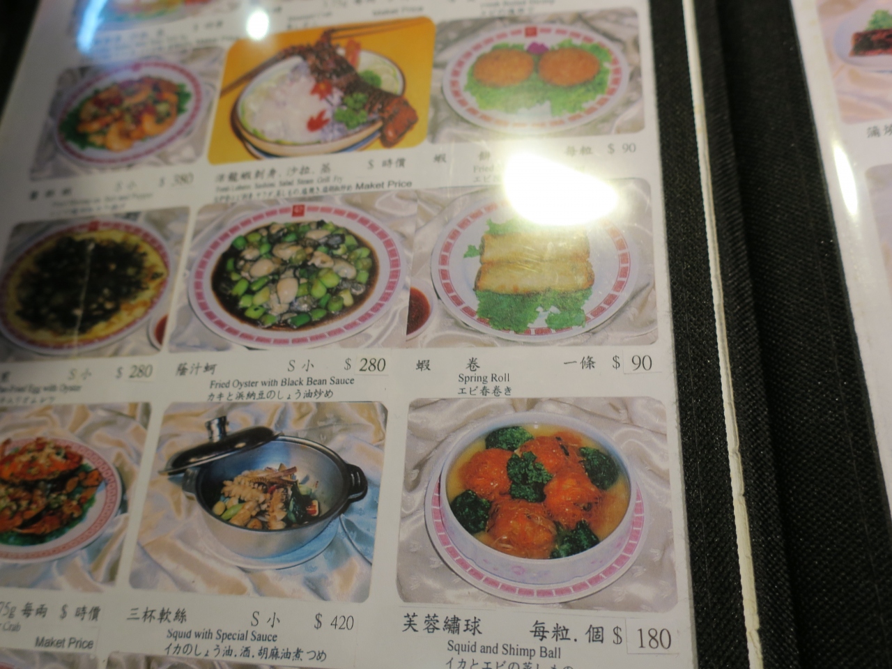 内装はゴージャスではなくシンプルな感じ、一階は居酒屋風家庭料理、二階は海鮮料理と分かれているよし。客層は日本人多し。蟹おこわや伊勢海老など高いメニューもあるが、ほとんどのメニューは家庭料理のようなメニュー。海鮮料理をうたっているだけあって、やはり海鮮系のメニューがおいしかった。