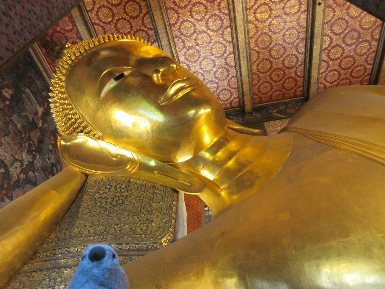 地下鉄Sanam Chai駅からだと歩いて5分ほど。同駅近くには観光客をカモろうとする「お寺閉まってます」詐欺の悪徳トゥクトゥク運転手もいるので注意。ワットポーといえば巨大涅槃仏があまりにも有名で、見ごたえがある。涅槃仏に沿った廊下には煩悩を落とすことのできる壷の列が並んでおり、20Bを払ってサタン硬貨を購入し、この壷に入れていくことで煩悩を落とすことができるとか。涅槃仏だけでなく4つの巨大な仏塔や本堂も見ごたえあるので忘れずに。
