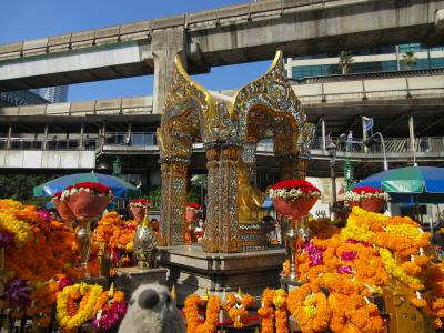 グランドハイアット・エラワンホテルという立派なホテルの前に位置するヒンドゥー教の祠でブラフマ神を祀っている。なんでもこのホテルを建設する時事故が相次いだことから、占いによりこの祠を建てたところ、以降は事故もなくスムーズに建設が進んだところから「願い事が叶う神様」として地元民の信仰を集めているらしい。入場無料だが供え物をする場合は有料。中にはぼったくりもいるらしいので注意。狭い敷地に多くの参拝客・観光客がごった返すのでスリにも注意。