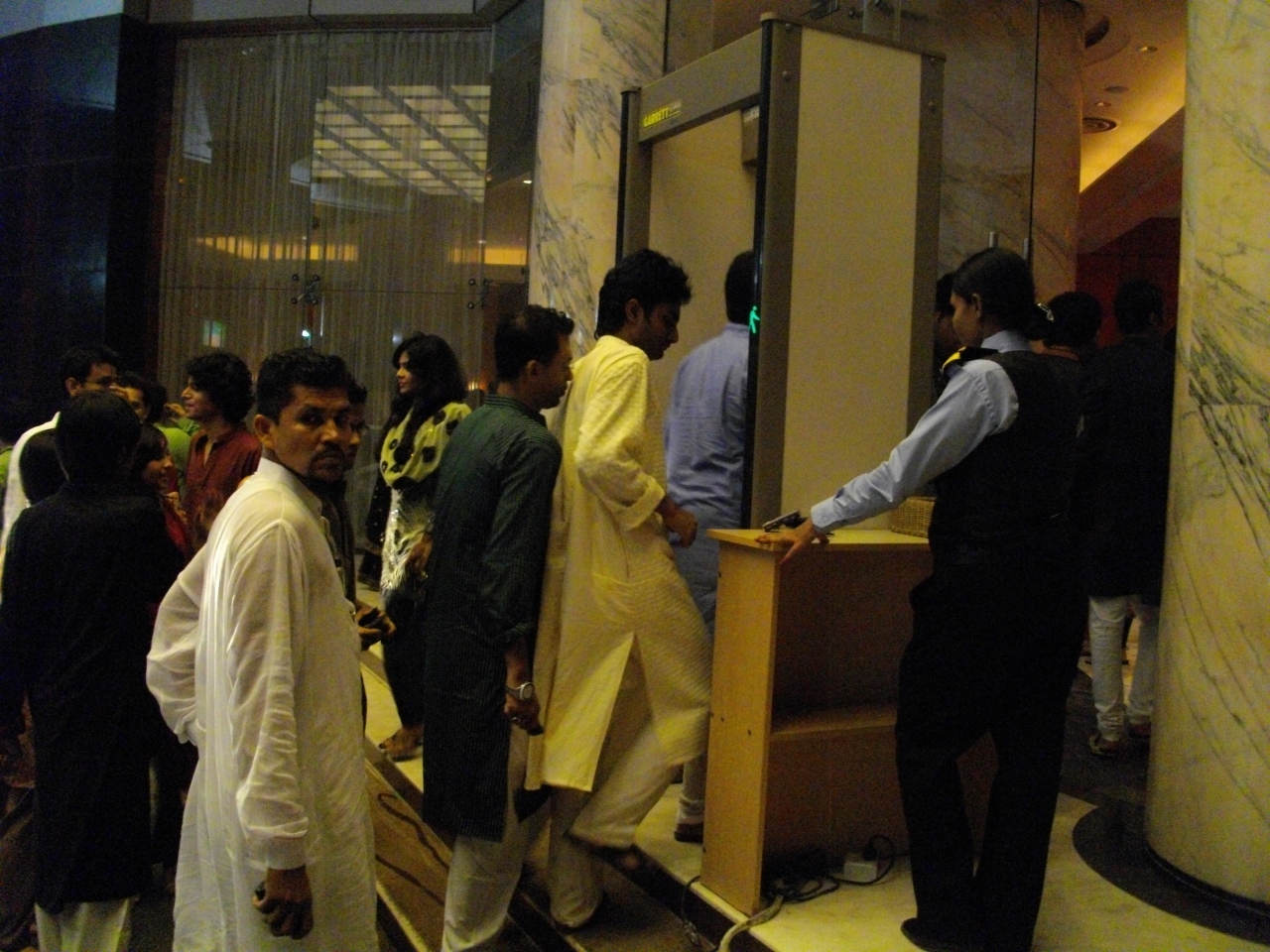 ホテルの車寄せには、小銃を持った警備スタッフがいますし、エントランスには空港にあるような金属探知機らしきゲートをくぐって入ります。でも検査は、いいかげんな感じが・・・。