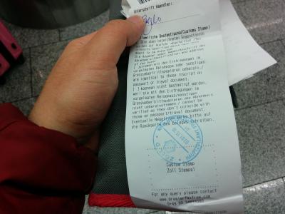 (7)税関カウンターにてスタンプを押してもらいます。(かなり長蛇の列になっており時間的余裕が必要です。また、商品をチェックされる可能性もあります。
