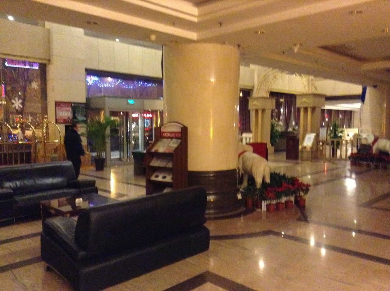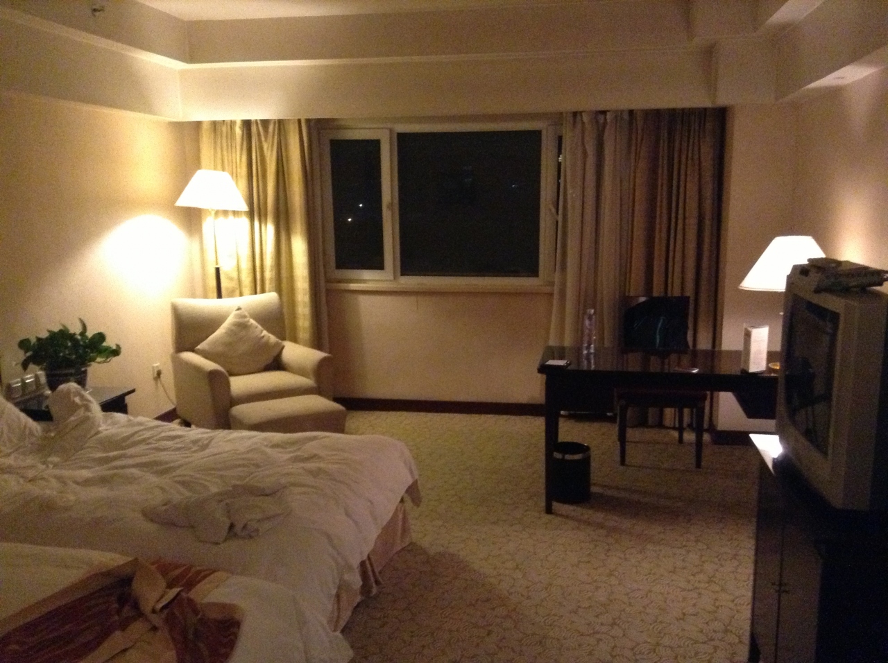 あえて気になったのは、中国のホテルにはどこでもミネラルウォーターがサービスでついているのですが、ここの客室にあるのは有料でした。1本5元です。