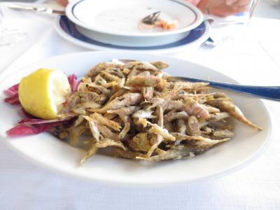 ナポリの卵城近辺のホテルに3泊したので、毎晩のようにシーフードレストランに通いました。どの店も大変素晴らしい料理を提供してくれましたが、このレストランのクオリティーは最高でした。特にウエイターさん一押しの小魚のフライは、キリッと冷えた地元白ワインと相性ピッタリ! 夕暮れにビスビオ山を見ながらとても優雅な時間を過ごしました。その他の料理もすべて美味しく、値段もお手頃でした。