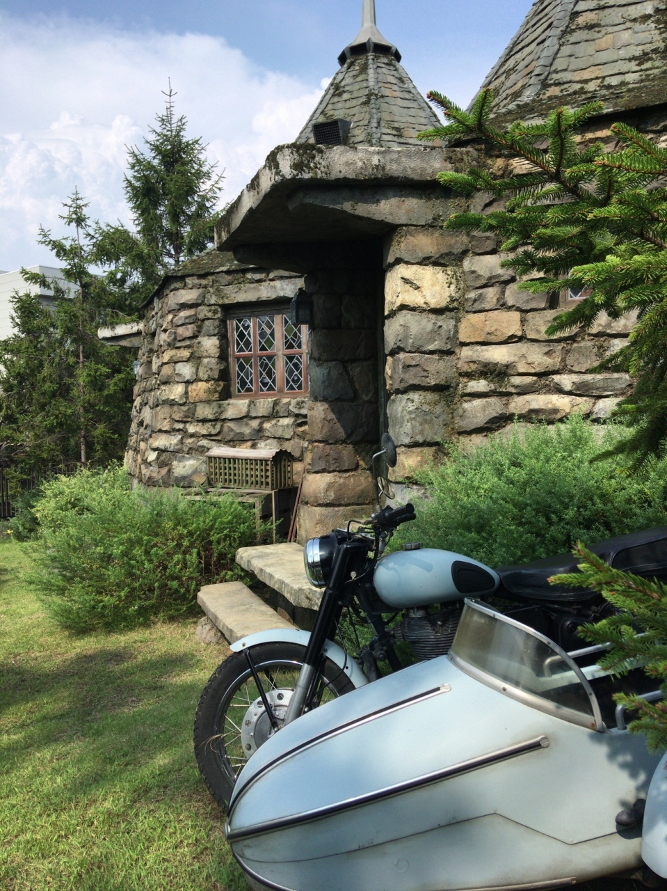 並んでいる途中にハグリッドの小屋とバイクがあります。乗る前からテンションが上がります。