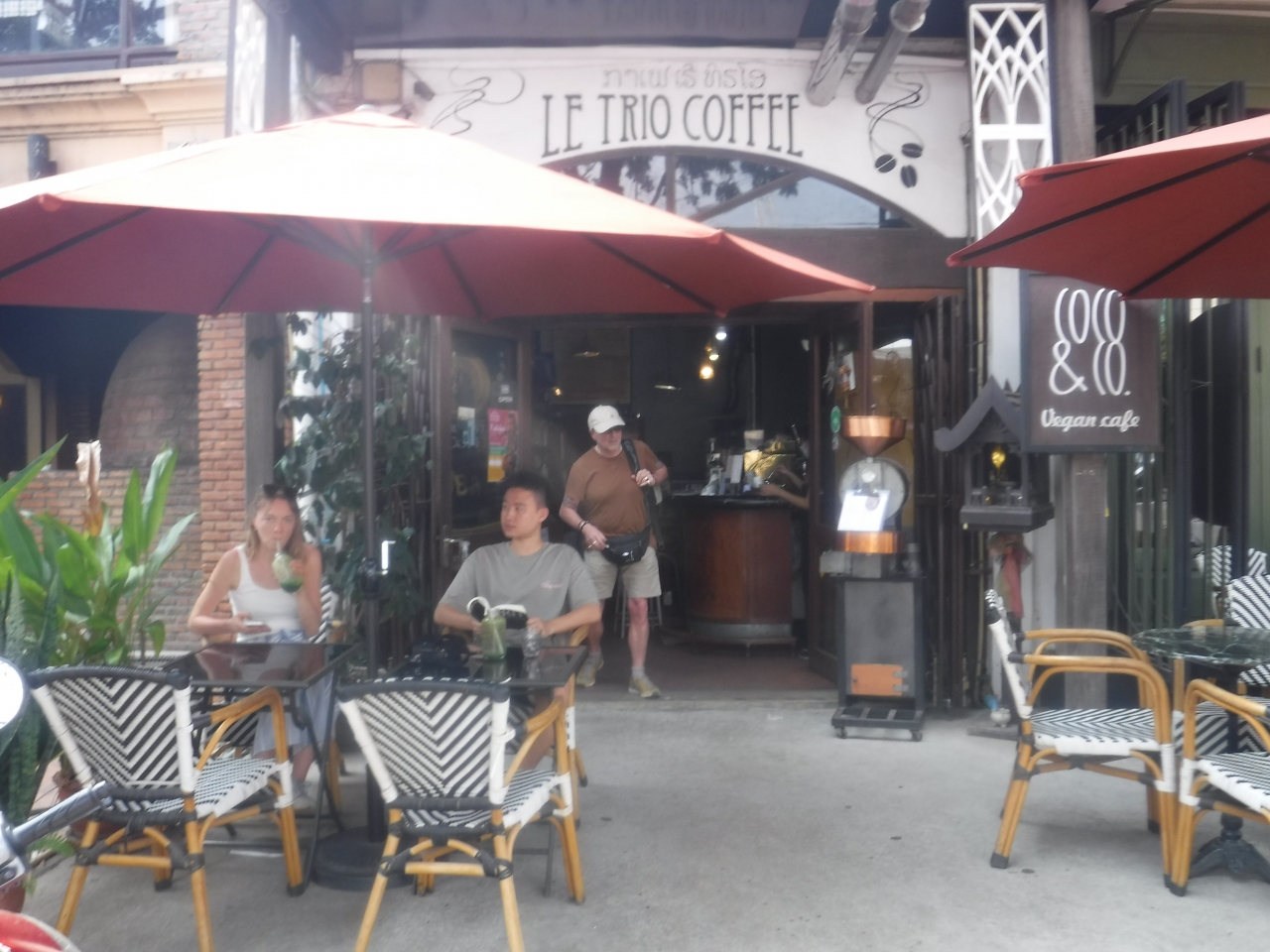 ラオスのビエンチャンに滞在中、このカフェでコーヒーなどを飲みながら休憩した。先に会計を済ませてから席に着くスタイルは、ラオスではこの店が始めたものだそうだ。
