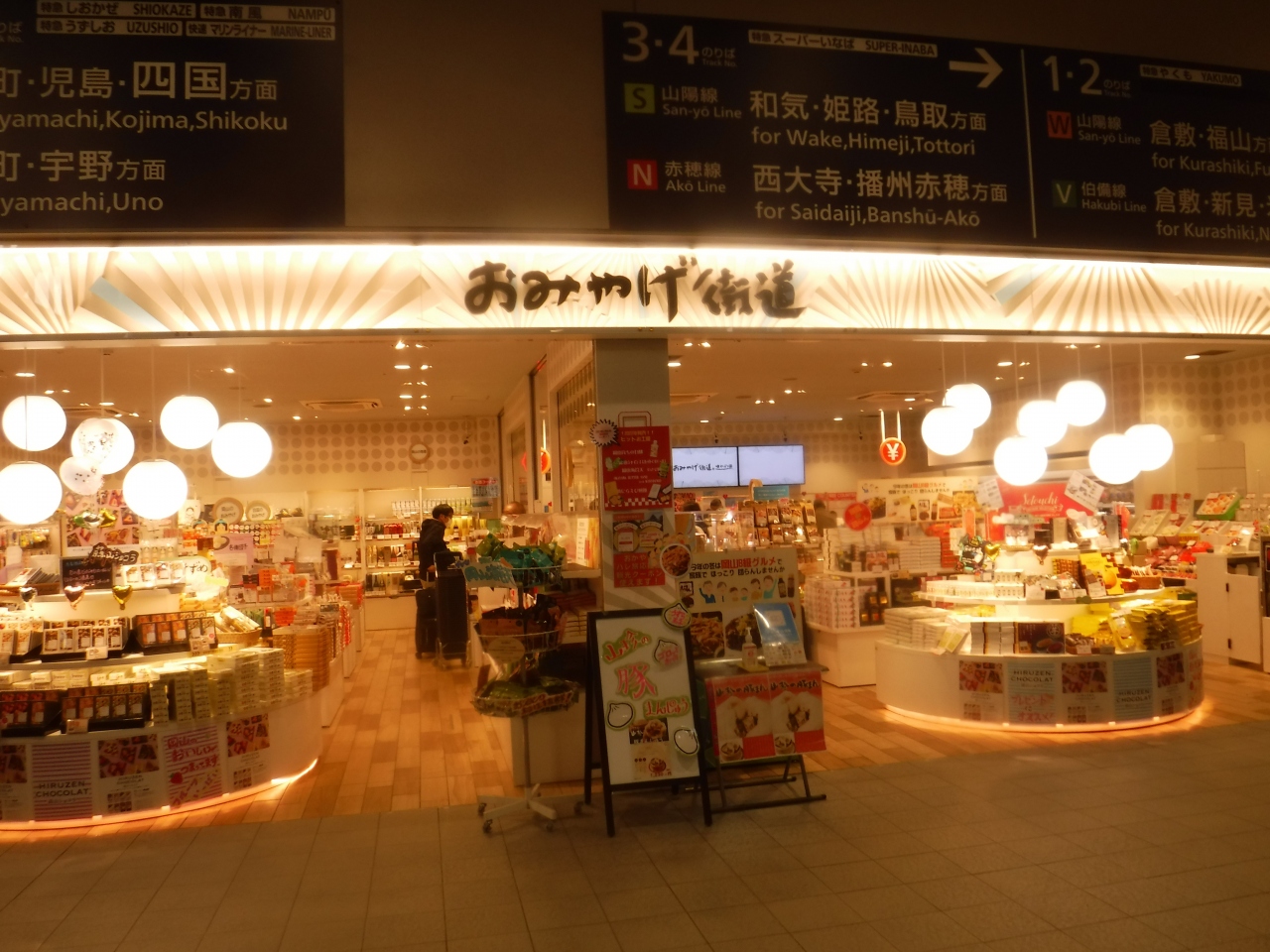 岡山のお土産のほとんどが入手できるので、列車に乗る前に利用でき、便利だ。