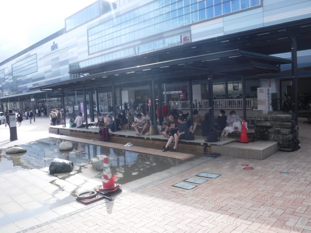 でんしゃできているひとは、ここでほとんどそろうので、便利だ。