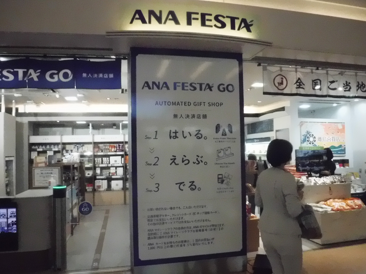 地下階にあるANA FESTAのショップ、以前は、東京土産を中心にした店だったが、セルフサービスのコンビニのような形態になっていた。