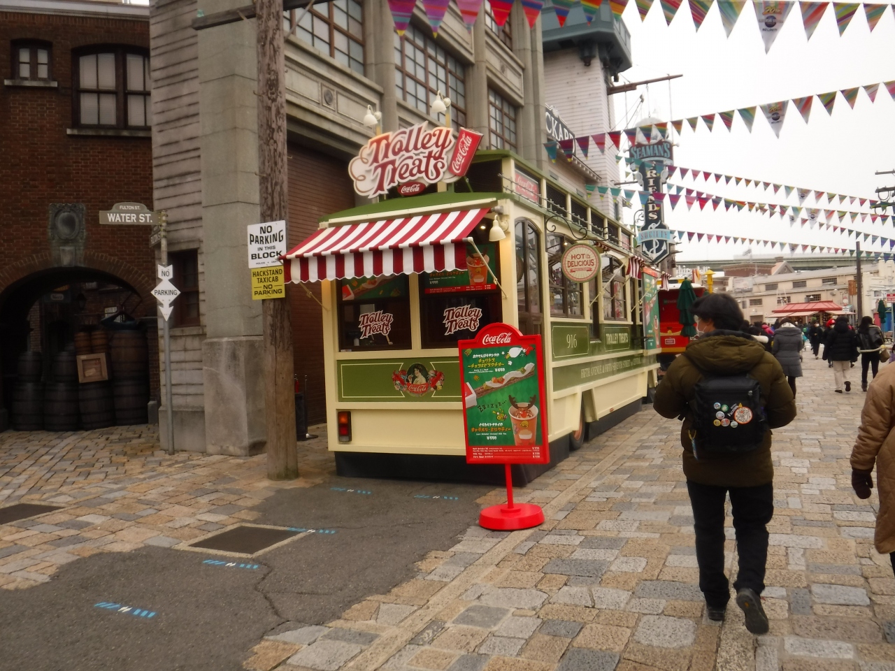 ユニバーサルスタジオの中に並んでいる、いろいろなフードのカートである。