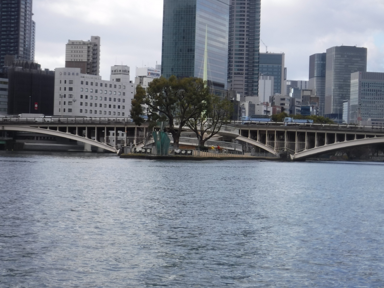 天神橋は、堂島川に架かる橋のひとつで、中之島の先端で、2つに分かれているような格好をしている。