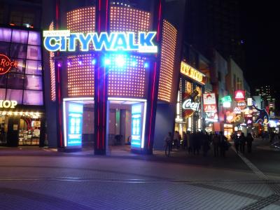 大阪のユニバーサルスタジオジャパンの前から、JRのユニバーサルシティ駅まで延びている道。こうこうとネオンがともっていて、どこかアメリカの町のようだ。