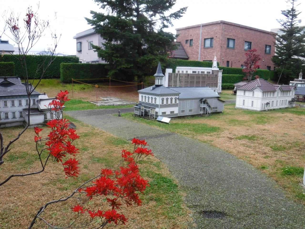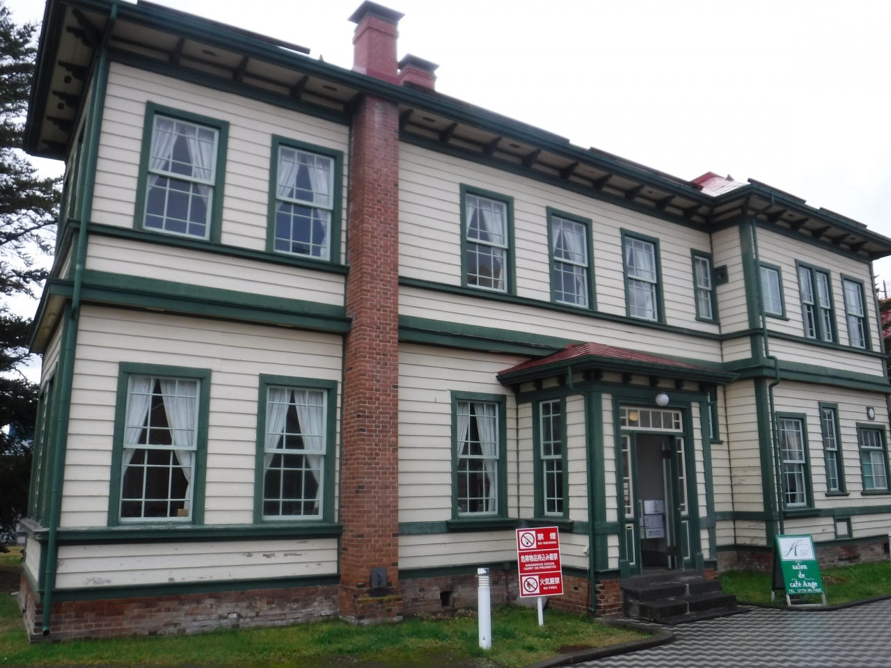 弘前にある、古い建物やミニチュアを保存するエリアに建つ、レトロな建物である。