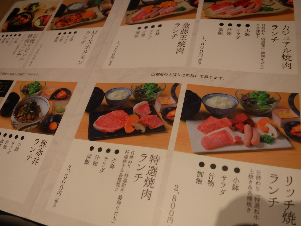 静岡県産の牛肉、豚肉を使った焼肉料理がメイン。