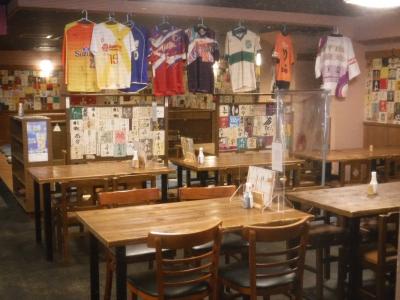店内には、サッカーチームのユニフォームがたくさん飾られているので、