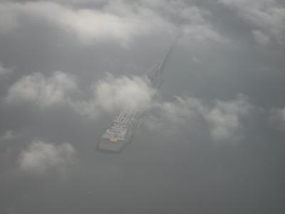 空から見る海ほたるは、単なる構造物ではなく、巨大な船のようだ。- 旅行時期