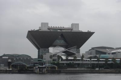 雨空でしたが、灰色のバックの中に浮かぶビッグサイトの輪郭は、なかなか幻想的です。