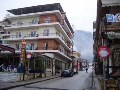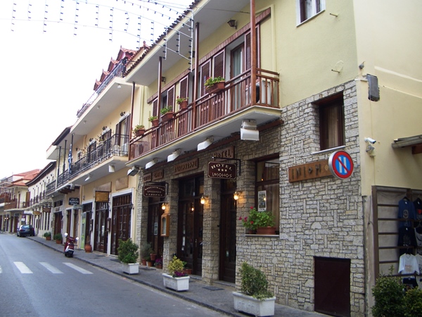 Iniohos(イニオホス)とは、デルフィ博物館の至宝「青銅の御者の像」の名前。ロビー前の道路を挟んで反対側に日本の個人商店のようなスーパーが2軒と、沢山の土産物店やレストランが軒を連ねています。ホテルに近い側のスーパーでハチミツを買ってスーツケースへ入れていたら、開封前のビンの蓋からハチミツが漏れて回りがベトベト。ハチミツを買うときは要注意ですね。訪れたのは2月。観光客が少なく、静かで、土産物店には客はほとんどいませんでした。