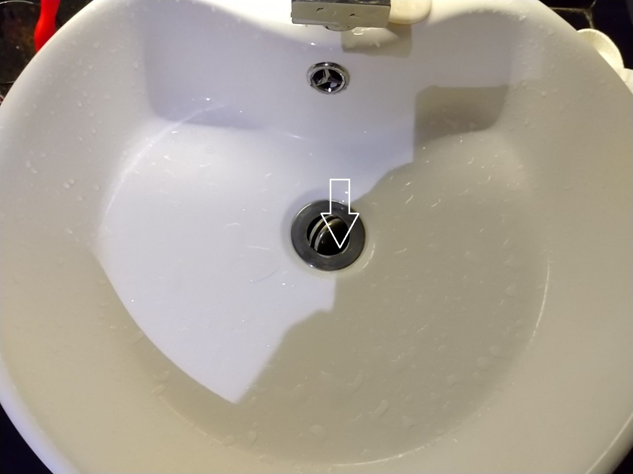 (3) 洗面容器の栓は、排水口の栓の端を押すと水が流れる仕組みになっていた(写真)。