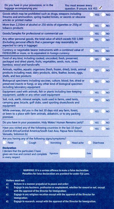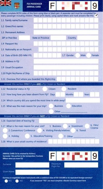 そこで、出発前、入国カード(FIJI PASSENGER ARRIVAL CARD)の書き方を調べました。