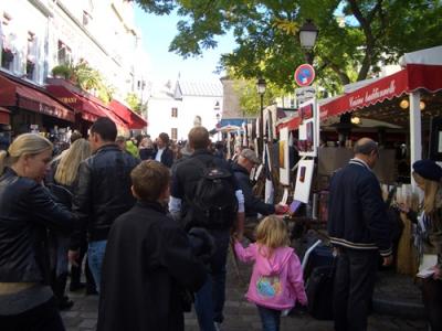 特に、絵を画く人たちが並んでいる一角は、ラッシュアワーの電車の様。