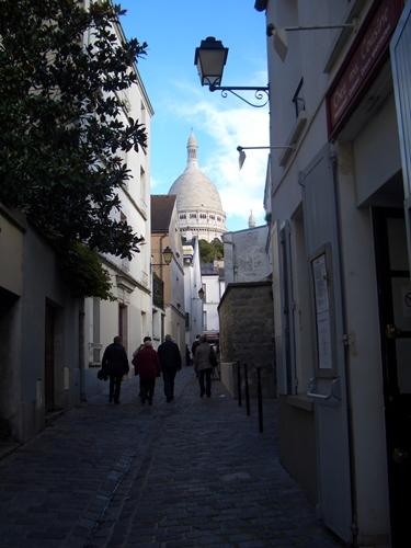次は、St-Rustique通りへ。テルトル広場から数歩外れただけですが、とたんに人通りがすくなく、ゆっくり歩くことができます。通りの奥にサクレクール聖堂が見えます。