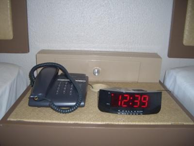 空調の風量調整つまみは、ベッドサイドの電話台の壁についていました。ちょっと見てもわかりません。