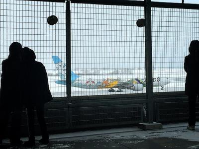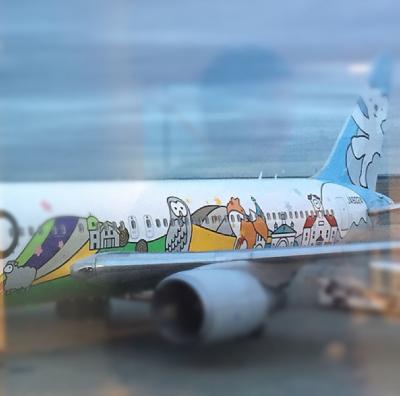 AIR Doの装飾機材はとてもカワイイ。尾翼に大きなベアドゥ。そして機体の側面には北海道の四季がイラストで描かれています。
