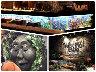 「レインフォレストカフェ・トーキョー」。バースデー記念に利用。熱帯雨林のジャングルの中でたくさんの動物たちと食事が楽しめます!