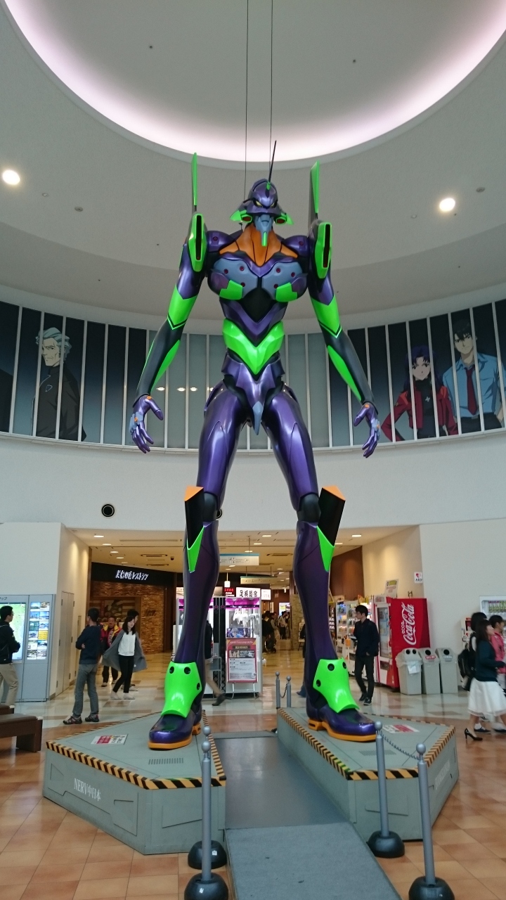 訪れた時には期間限定でエヴァンゲリオンとのコラボが実施中で、初号機の巨大な像などが飾られていました。