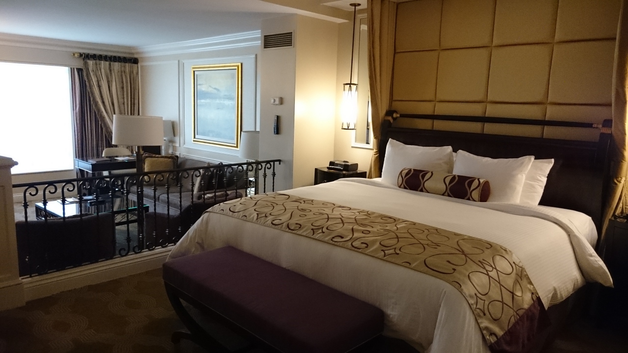 オールスイートということですが、二部屋あるわけではなく、ベッドスペースとリビングスペースが段差で分けられているような作りで、飲食をベッドですることもなく快適です。