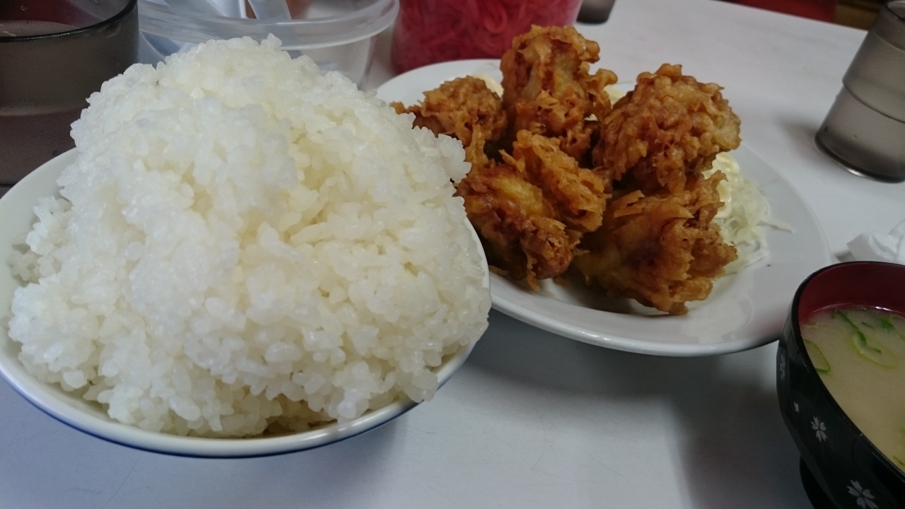 ラーメン屋なのだが、唐揚げ定食もおいしいとのことで、同行者がラーメンを注文したので唐揚げ定食をオーダー。