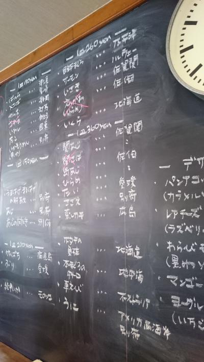 店内にネタの産地を書いた黒板があり、あらかじめチェックでき、地元のネタにしぼってオーダーすることができます。