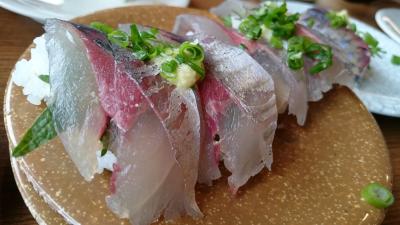 回転寿司でしたが、レーンから離れたテーブル席ということもあり、すべてオーダーで注文。関あじなど地元の食材がお手頃な値段でいただくことができました。